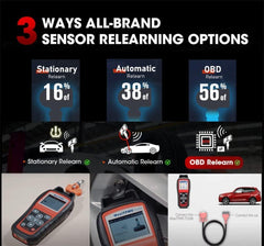 Sensor-relearn is a necessary procedure after the tire rotation, sensor change, and TPMS module replacement. With this effective TPMS relearn tool TS508wf, you won't face the hassle to search for relearning instructions online. It neatly explains Automatic & Stationary relearn operations in its on-tool relearn guide. Completing the relearn procedure clears TPMS diagnostic fault codes and allows the vehicle’s TPMS system to function properly.